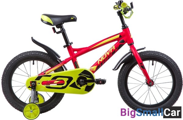 Велосипед NOVATRACK 16", TORNADO, алюм., красный, полная защита цепи, тормоз нож, короткие крылья,